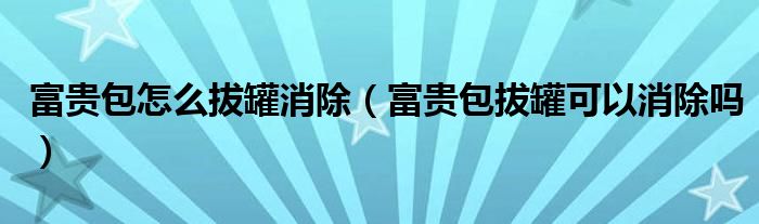 大家好,linda来为大家解答以上的问题。富贵包怎么拔罐消除,富贵包拔罐可以消除吗很多人还不知道,现在让我们一起来看看吧!