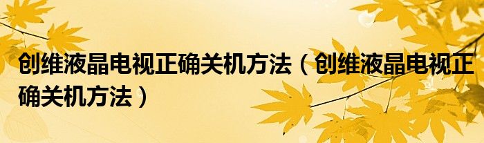 解答:1、创维液晶电视正确关机方法: