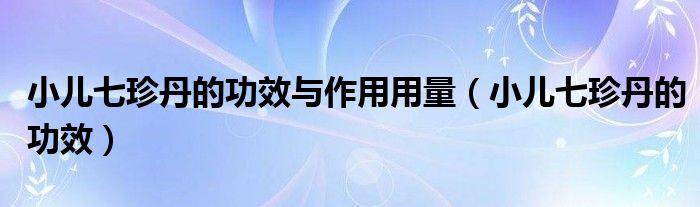 大家好,linda来为大家解答以上的问题。小儿七珍丹的功效与作用用量,小儿七珍丹的功效很多人还不知道,现在让我们一起来看看吧!