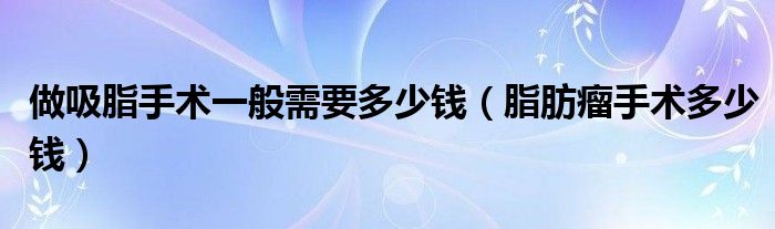 大家好,linda来为大家解答以上的问题。做吸脂手术一般需要多少钱,脂肪瘤手术多少钱很多人还不知道,现在让我们一起来看看吧!