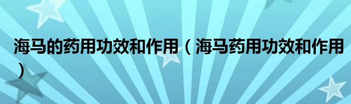 大家好,linda来为大家解答以上的问题。海马的药用功效和作用,海马药用功效和作用很多人还不知道,现在让我们一起来看看吧!