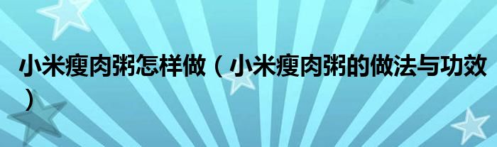 大家好,linda来为大家解答以上的问题。小米瘦肉粥怎样做,小米瘦肉粥的做法与功效很多人还不知道,现在让我们一起来看看吧!