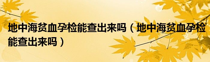 大家好,linda来为大家解答以上的问题。地中海贫血孕检能查出来吗,地中海贫血孕检能查出来吗很多人还不知道,现在让我们一起来看看吧!