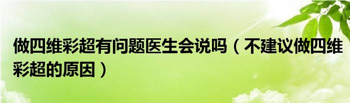 大家好,linda来为大家解答以上的问题。做四维彩超有问题医生会说吗,不建议做四维彩超的原因很多人还不知道,现在让我们一起来看看吧!