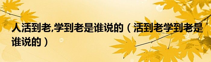 人活到老,学到老是谁说的(活到老学到老是谁说的)