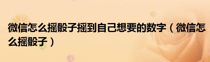 大家好,小晋来为大家解答以下问题,关于微信怎么摇骰子摇到自己想要的数字,微信怎么摇骰子很多人还不知道,今天让我们一起来看看吧!