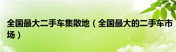 2,全国最大的二手车市场:应该是在北京那个二手车交易市场.花乡旧机动车交易市场地址:南四环花乡桥往西路北