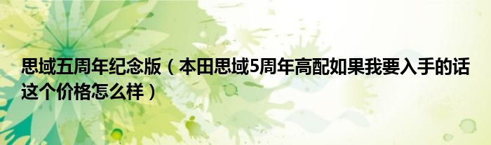 大家好,小常来为大家解答以下问题,对于思域五周年纪念版,本田思域5周年高配如果我要入手的话这个价格怎么样很多人还不知道,今天让我们一起来看看吧!