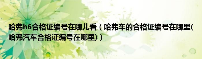 大家好,小常来为大家解答以下问题,对于哈弗h6合格证编号在哪儿看,哈弗车的合格证编号在哪里(哈弗汽车合格证编号在哪里)很多人还不知道,今天让我们一起来看看吧!