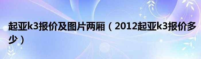 大家好,小常来为大家解答以下问题,对于起亚k3报价及图片两厢,2012起亚k3报价多少很多人还不知道,今天让我们一起来看看吧!