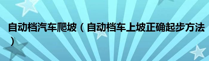 1,自动档车上坡正确起步方法 :1,拉紧手刹。 2,起动车时先用右脚紧踩刹车踏板再起动车,然后把挡位挂1挡或2挡的位置,(有些款车1挡和2挡用拼音标示的,只有高挡用D标示的.不要挂D挡)。 3,松开刹车右脚放到油门踏板上慢慢加油的同时右手慢慢放下手刹。
