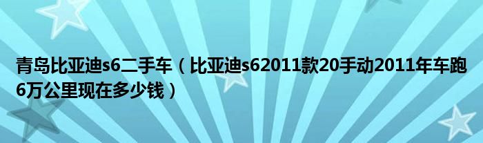 大家好,小常来为大家解答以下问题,对于青岛比亚迪s6二手车,比亚迪s62011款20手动2011年车跑6万公里现在多少钱很多人还不知道,今天让我们一起来看看吧!