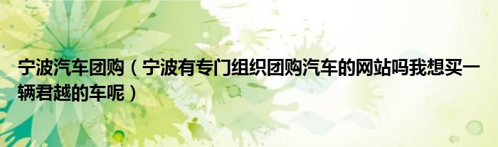 1,宁波有专门组织团购汽车的网站吗我想买一辆君越的车呢:肯定有呀,比如团车网就可以呀!还是最优惠的价钱呢!很划得来的呢!