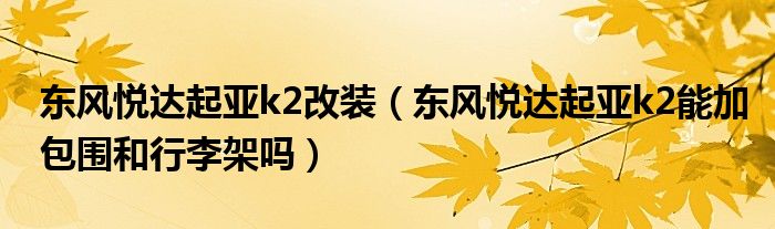 1,东风悦达起亚k2能加包围和行李架吗:你好!包围是可以加的,行李架不建议加装!【汽车问题,问汽车大师。4S店专业技师,10分钟解决。】