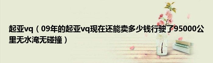 1,09年的起亚vq现在还能卖多少钱行驶了95000公里无水淹无碰撞:09年的起亚vq行驶了95000公里,一般车子的车况还有车子的手续方面没有问题,该二手车价格大体八万五左右。