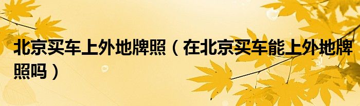 大家好,小常来为大家解答以下问题,对于北京买车上外地牌照,在北京买车能上外地牌照吗很多人还不知道,今天让我们一起来看看吧!