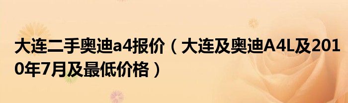 大家好,小常来为大家解答以下问题,对于大连二手奥迪a4报价,大连及奥迪A4L及2010年7月及最低价格很多人还不知道,今天让我们一起来看看吧!