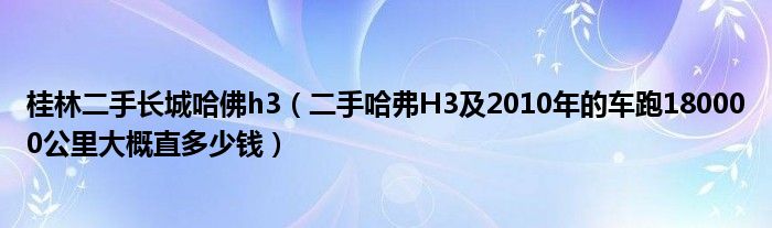 大家好,小常来为大家解答以下问题,对于桂林二手长城哈佛h3,二手哈弗H3及2010年的车跑180000公里大概直多少钱很多人还不知道,今天让我们一起来看看吧!