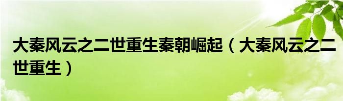 大家好,小晋来为大家解答以下问题,关于大秦风云之二世重生秦朝崛起,大秦风云之二世重生很多人还不知道,今天让我们一起来看看吧!