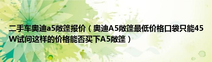 大家好,小常来为大家解答以下问题,对于二手车奥迪a5敞篷报价,奥迪A5敞篷最低价格口袋只能45W试问这样的价格能否买下A5敞篷很多人还不知道,今天让我们一起来看看吧!