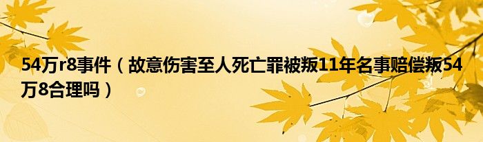 大家好,小常来为大家解答以下问题,对于54万r8事件,故意伤害至人死亡罪被叛11年名事赔偿叛54万8合理吗很多人还不知道,今天让我们一起来看看吧!
