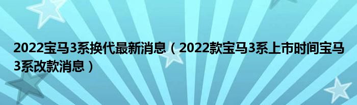 大家好,阳阳来为大家讲解下。2022宝马3系换代最新消息,2022款宝马3系上市时间宝马3系改款消息很多人还不知道,现在让我们一起来看看吧!