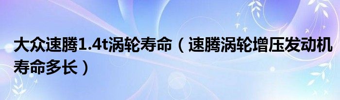 1、速腾涡轮增压发动机的寿命大概是10年或者20万公里,但是寿命的长短和你保养使用的方式有关:1。