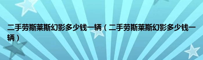 大家好,阳阳来为大家讲解下。二手劳斯莱斯幻影多少钱一辆,二手劳斯莱斯幻影多少钱一辆很多人还不知道,现在让我们一起来看看吧!