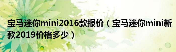 大家好,阳阳来为大家讲解下。宝马迷你mini2016款报价,宝马迷你mini新款2019价格多少很多人还不知道,现在让我们一起来看看吧!