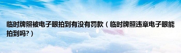 大家好,小美来为大家解答以上问题。临时牌照被电子眼拍到有没有罚款,临时牌照违章电子眼能拍到吗?很多人还不知道,现在让我们一起来看看吧!