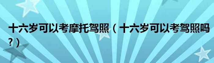 大家好,小美来为大家解答以上问题。十六岁可以考摩托驾照,十六岁可以考驾照吗?很多人还不知道,现在让我们一起来看看吧!