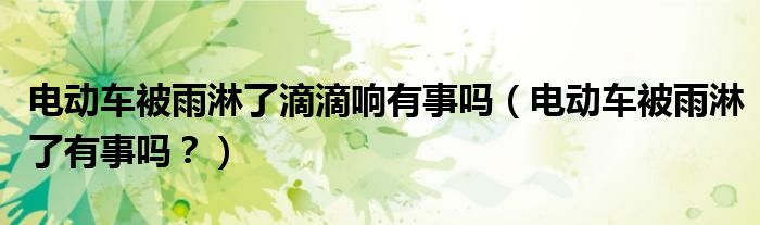 大家好,小美来为大家解答以上问题。电动车被雨淋了滴滴响有事吗,电动车被雨淋了有事吗?很多人还不知道,现在让我们一起来看看吧!