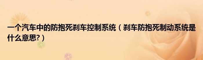 大家好,小美来为大家解答以上问题。一个汽车中的防抱死刹车控制系统,刹车防抱死制动系统是什么意思?很多人还不知道,现在让我们一起来看看吧!