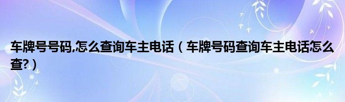 大家好,小美来为大家解答以上问题。车牌号号码,怎么查询车主电话,车牌号码查询车主电话怎么查?很多人还不知道,现在让我们一起来看看吧!