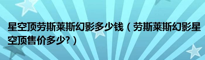 大家好,小美来为大家解答以上问题。星空顶劳斯莱斯幻影多少钱,劳斯莱斯幻影星空顶售价多少?很多人还不知道,现在让我们一起来看看吧!
