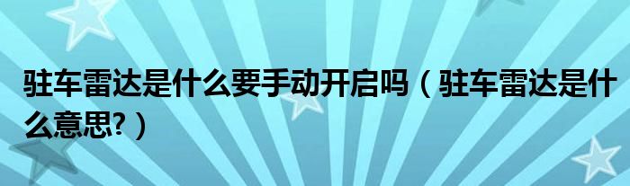 大家好,小美来为大家解答以上问题。驻车雷达是什么要手动开启吗,驻车雷达是什么意思?很多人还不知道,现在让我们一起来看看吧!