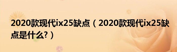 大家好,小美来为大家解答以上问题。2020款现代ix25缺点,2020款现代ix25缺点是什么?很多人还不知道,现在让我们一起来看看吧!