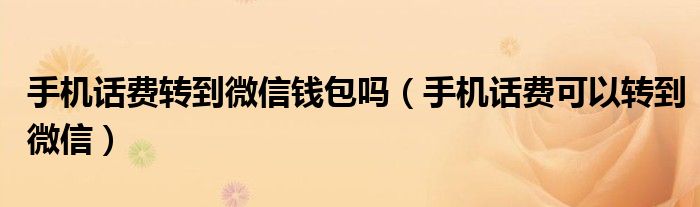 手机话费转到微信钱包吗(手机话费可以转到微信)
