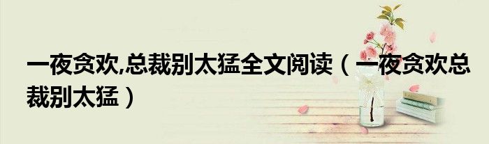 关于一夜贪欢,总裁别太猛全文阅读,一夜贪欢总裁别太猛这个很多人还不知道,今天菲菲来为大家解答以上的问题,现在让我们一起来看看吧!