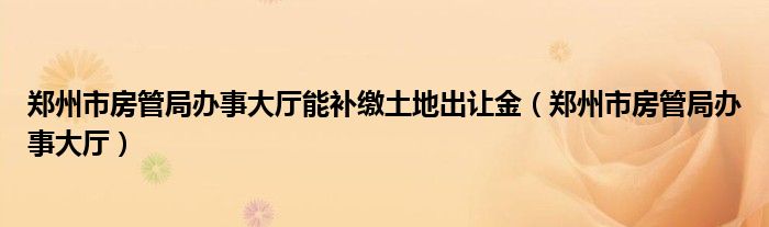 关于郑州市房管局办事大厅能补缴土地出让金,郑州市房管局办事大厅这个很多人还不知道,今天菲菲来为大家解答以上的问题,现在让我们一起来看看吧!