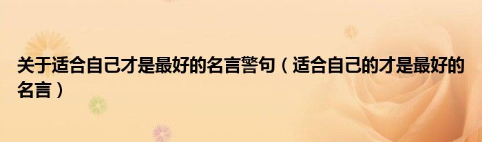 关于关于适合自己才是最好的名言警句,适合自己的才是最好的名言这个很多人还不知道,今天菲菲来为大家解答以上的问题,现在让我们一起来看看吧!