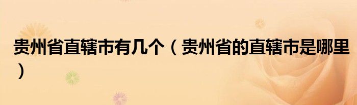 贵州省直辖市有几个(贵州省的直辖市是哪里)
