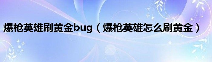 关于爆枪英雄刷黄金bug,爆枪英雄怎么刷黄金这个很多人还不知道,今天菲菲来为大家解答以上的问题,现在让我们一起来看看吧!