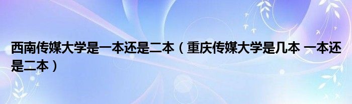西南传媒大学是一本还是二本(重庆传媒大学是几本一本还是二本)