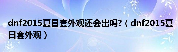 dnf2015夏日套外观还会出吗?(dnf2015夏日套外观)