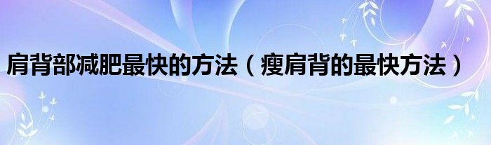 关于肩背部减肥最快的方法,瘦肩背的最快方法这个很多人还不知道,今天菲菲来为大家解答以上的问题,现在让我们一起来看看吧!