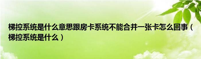 关于梯控系统是什么意思跟房卡系统不能合并一张卡怎么回事,梯控系统是什么这个很多人还不知道,今天菲菲来为大家解答以上的问题,现在让我们一起来看看吧!