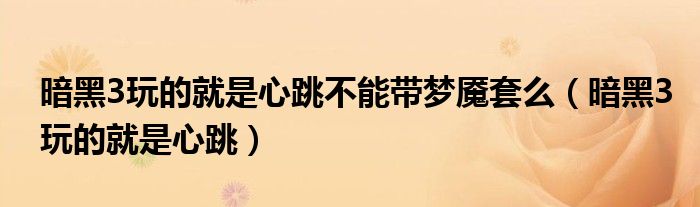 关于暗黑3玩的就是心跳不能带梦魇套么,暗黑3玩的就是心跳这个很多人还不知道,今天菲菲来为大家解答以上的问题,现在让我们一起来看看吧!