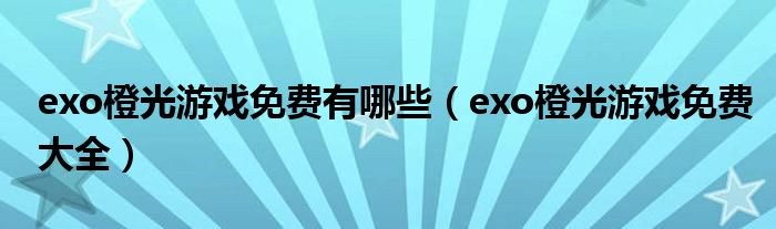 关于exo橙光游戏免费有哪些,exo橙光游戏免费大全这个很多人还不知道,今天菲菲来为大家解答以上的问题,现在让我们一起来看看吧!