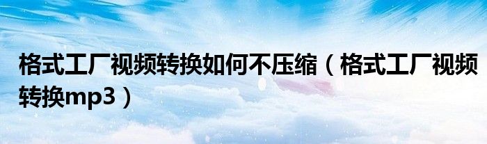 关于格式工厂视频转换如何不压缩,格式工厂视频转换mp3这个很多人还不知道,今天菲菲来为大家解答以上的问题,现在让我们一起来看看吧!